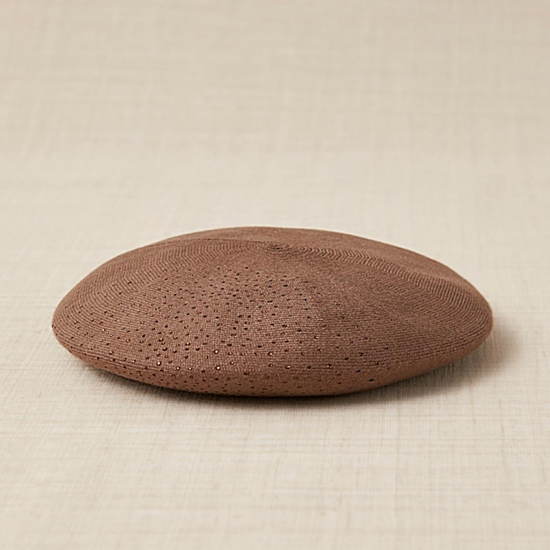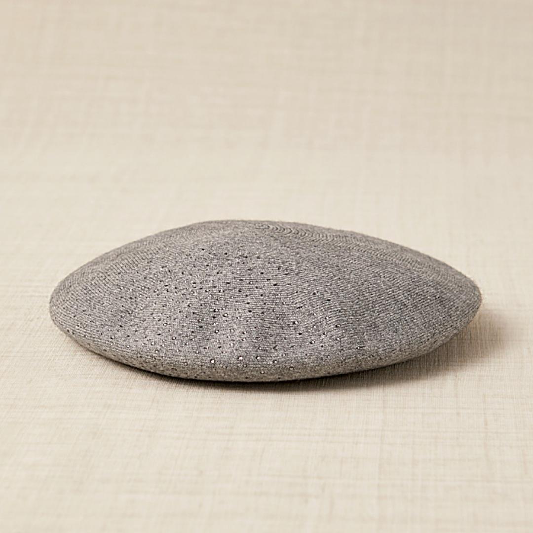 Decorada con cristales tipo zirconita, distribuidos con discreción por toda la superficie, refleja la luz con sutileza y añade un brillo sofisticado que convierte esta boina en un complemento muy favorecedor.