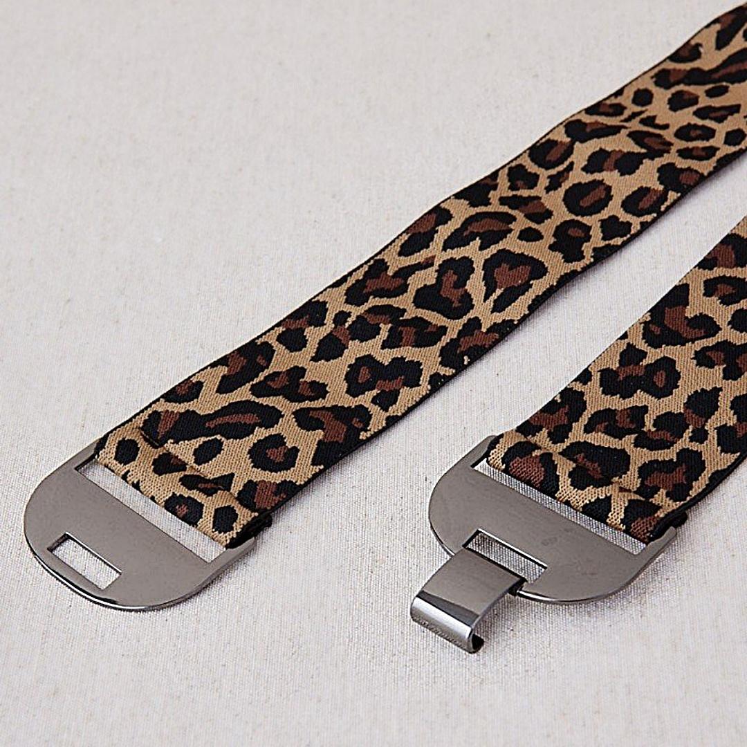 Cinturón elástico animal print con cierre metálico frontal. Diseño cómodo y con carácter. En oro o rutenio (gris oscuro).