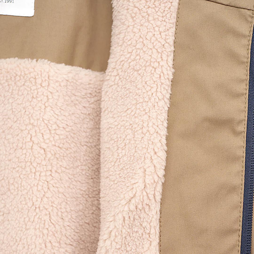 El interior está forrado en 100 % poliéster sherpa tipo borreguito, cálido y envolvente, que convierte esta prenda en un abrigo confortable incluso en temperaturas bajas. No es solo un chubasquero: es una pieza de invierno preparada para el día a día.