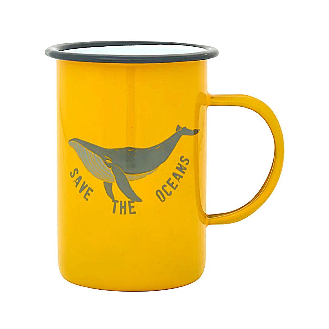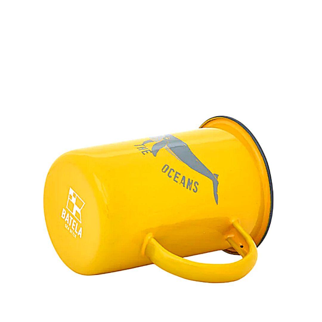 La taza alta de metal esmaltado Batela con ilustración de ballena es una pieza resistente y ligera inspirada en el universo marinero. Su vibrante color amarillo combinado con el dibujo en tonos grises y el mensaje “Save the Oceans” crea un diseño llamativo que transmite claramente el espíritu aventurero ligado al mar. Fabricada en metal esmaltado, esta taza destaca por su durabilidad y ligereza. Este tipo de material ha sido tradicionalmente utilizado en utensilios de campamento y navegación, lo que refuerza su carácter práctico y su estética náutica. Es una pieza perfecta para quienes disfrutan del café, el té o cualquier bebida caliente con un estilo diferente.
