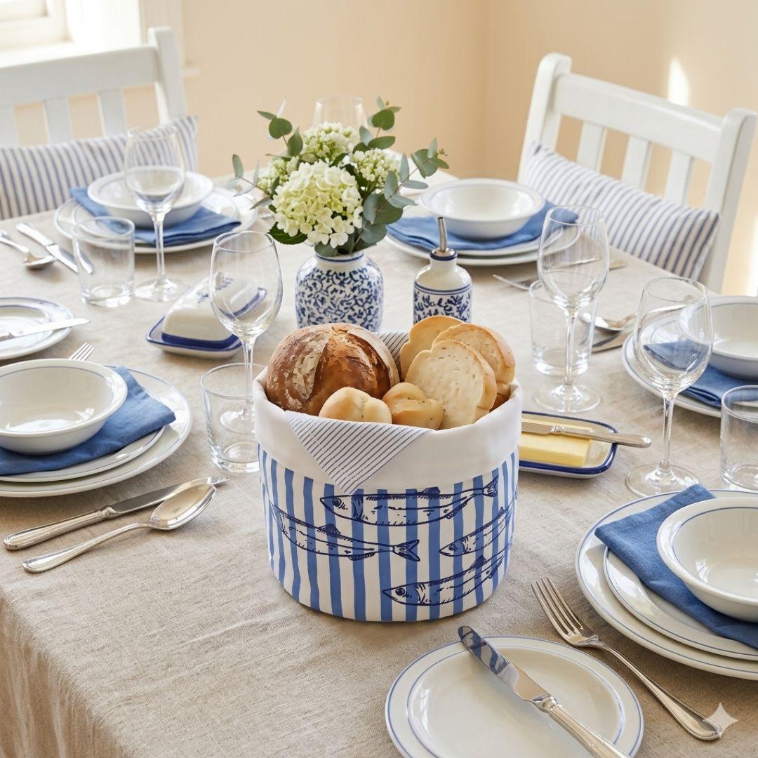 Una cesta de pan de algodón Batela inspirada en el universo náutico, perfecta para quienes disfrutan cuidando los detalles en la mesa.