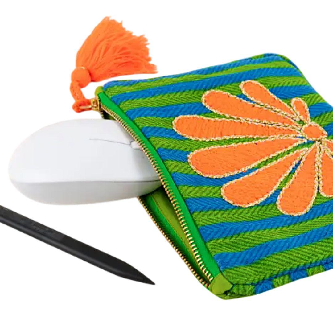 El bolso de mano bordado concha Latido talla M mantiene la esencia del modelo, pero con un plus de tamaño que lo hace todavía más versátil. Es ese punto intermedio perfecto entre lo compacto y lo funcional, pensado para acompañarte con comodidad en el día a día. Su diseño destaca por el bordado de concha en contraste, que aporta personalidad y un aire fresco muy reconocible. En esta versión en tonos verdes con detalle en naranja, el resultado es especialmente llamativo y lleno de vida, ideal para looks de primavera y verano.