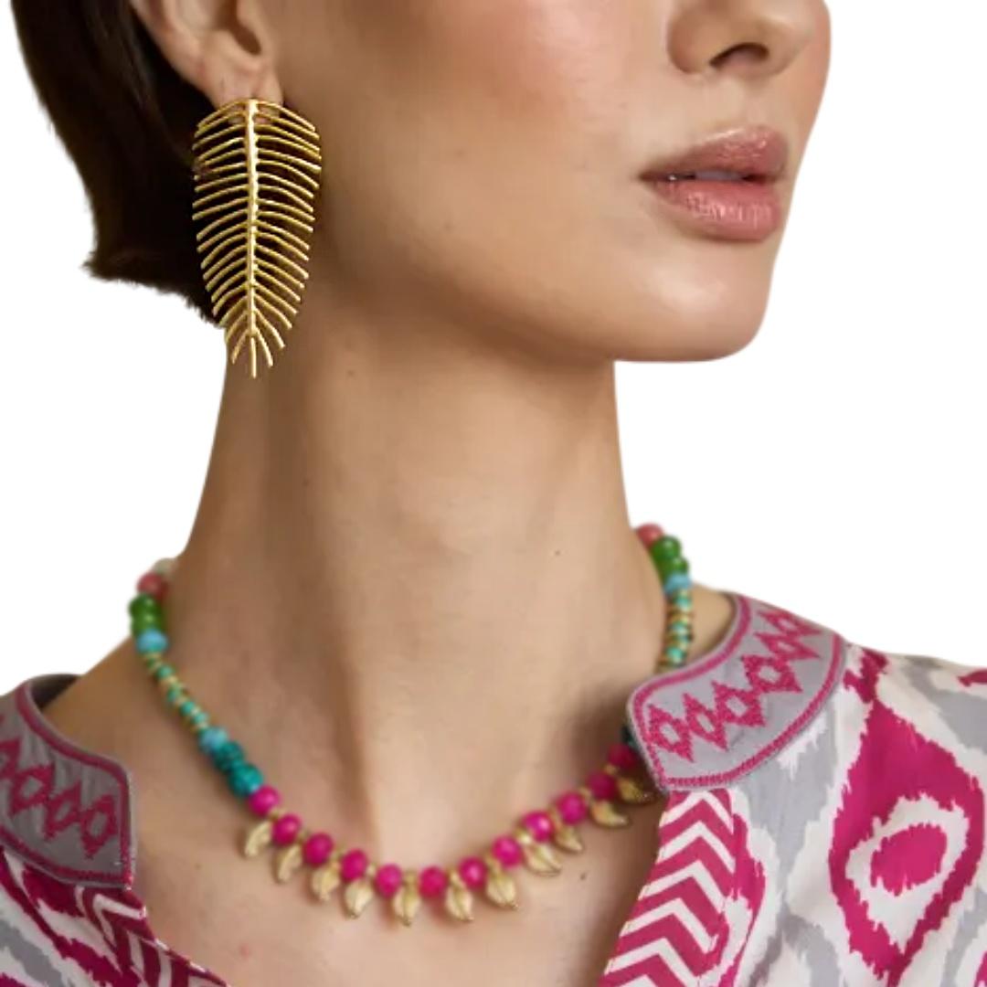 Pendientes hoja Latido en baño dorado, diseño alargado y ligero con cierre de tuerca. Elegantes, favorecedores y fáciles de combinar.