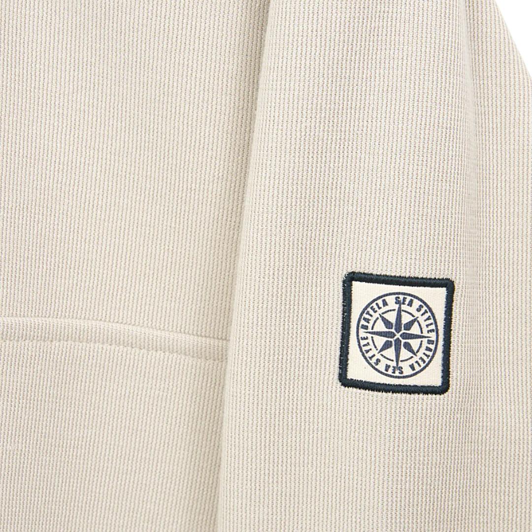 El diseño es limpio y funcional, pensado para acompañar sin complicaciones. El cuello alto con media cremallera no solo aporta un aire más cuidado, sino que también permite regular la apertura según el momento, haciéndola práctica tanto en entretiempo como en días más frescos. Es una prenda que funciona igual de bien sola o como capa ligera. Los acabados marcan la diferencia: costuras bien definidas, tejido compacto y detalles discretos como el parche en la manga que refuerzan la identidad de la marca sin recargar la prenda. Todo está en su sitio, sin excesos.