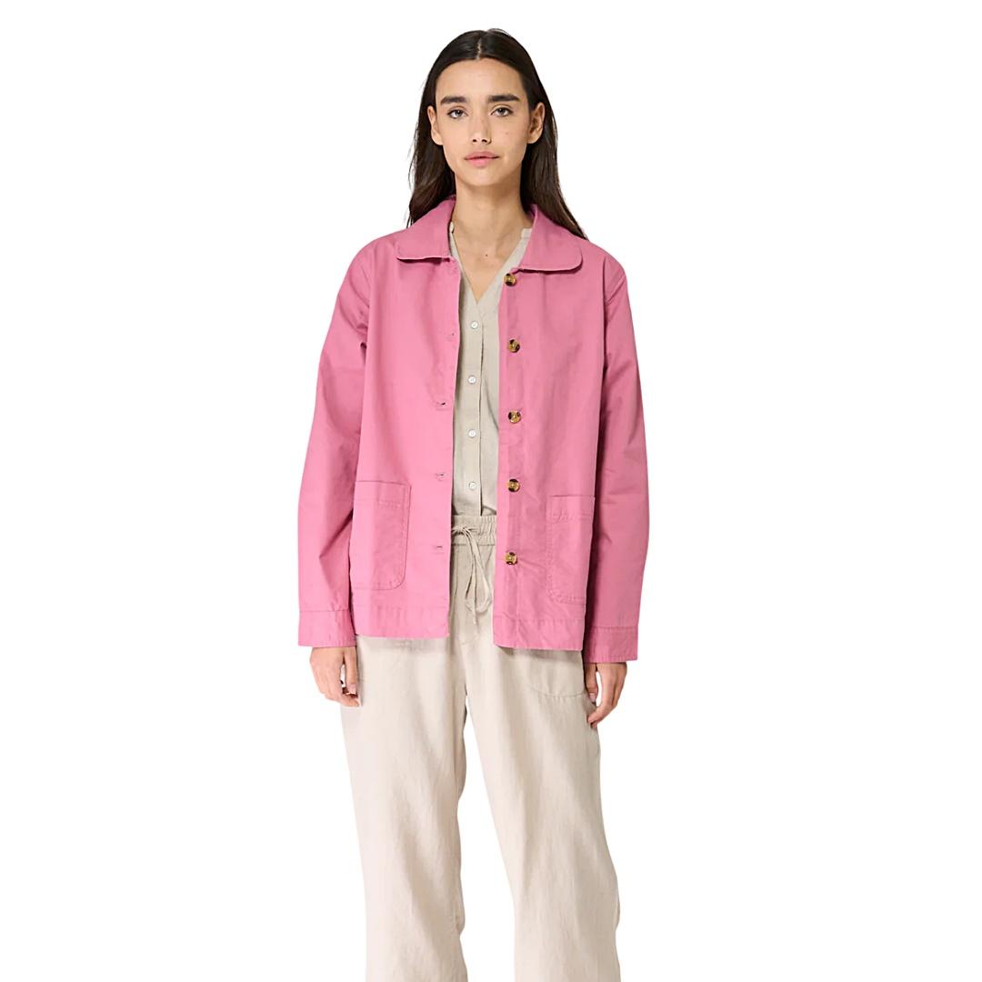 Chaqueta sobrecamisa de algodón Batela con elastano, ligera y cómoda. Corte recto, bolsillos frontales y diseño versátil ideal para entretiempo.
