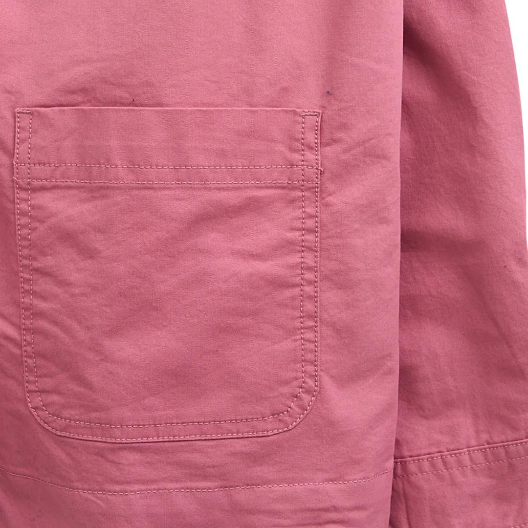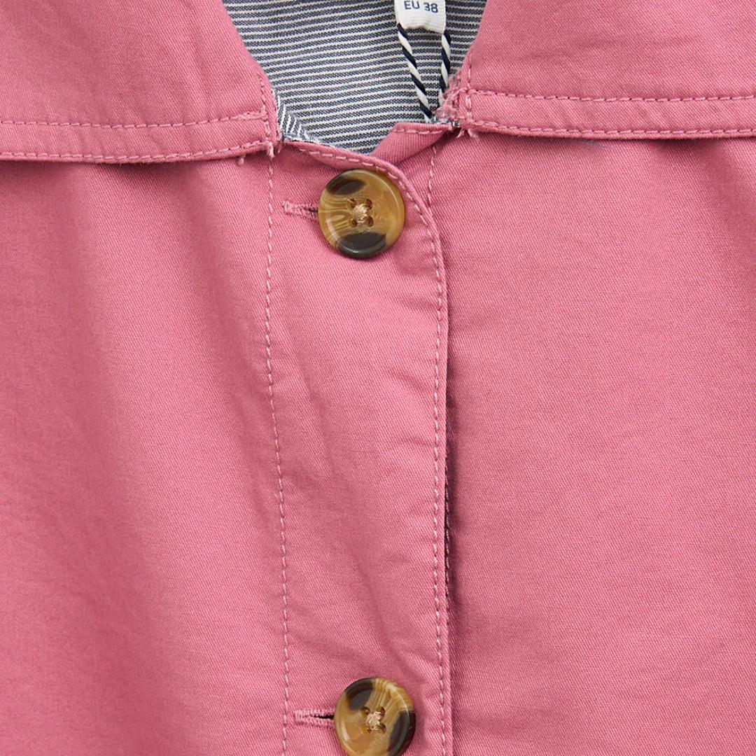 El diseño apuesta por líneas sencillas y bien resueltas. El cuello camisero le aporta un aire más estructurado, mientras que el cierre frontal con botones refuerza ese estilo de sobrecamisa versátil que puedes llevar abierta o cerrada según el momento. No busca destacar por exceso, sino por equilibrio. Los bolsillos frontales tipo plastrón no solo aportan funcionalidad, sino que ayudan a dar carácter a la prenda sin recargarla. El corte recto y el largo a la cadera hacen que se adapte fácilmente a diferentes tipos de cuerpo y que combine sin esfuerzo tanto con pantalones como con vestidos o faldas. Es una prenda especialmente útil en esos días en los que no hace frío, pero tampoco calor. Perfecta para mañanas frescas, tardes de primavera o noches de verano. De esas que acabas dejando siempre a mano porque sabes que encaja.